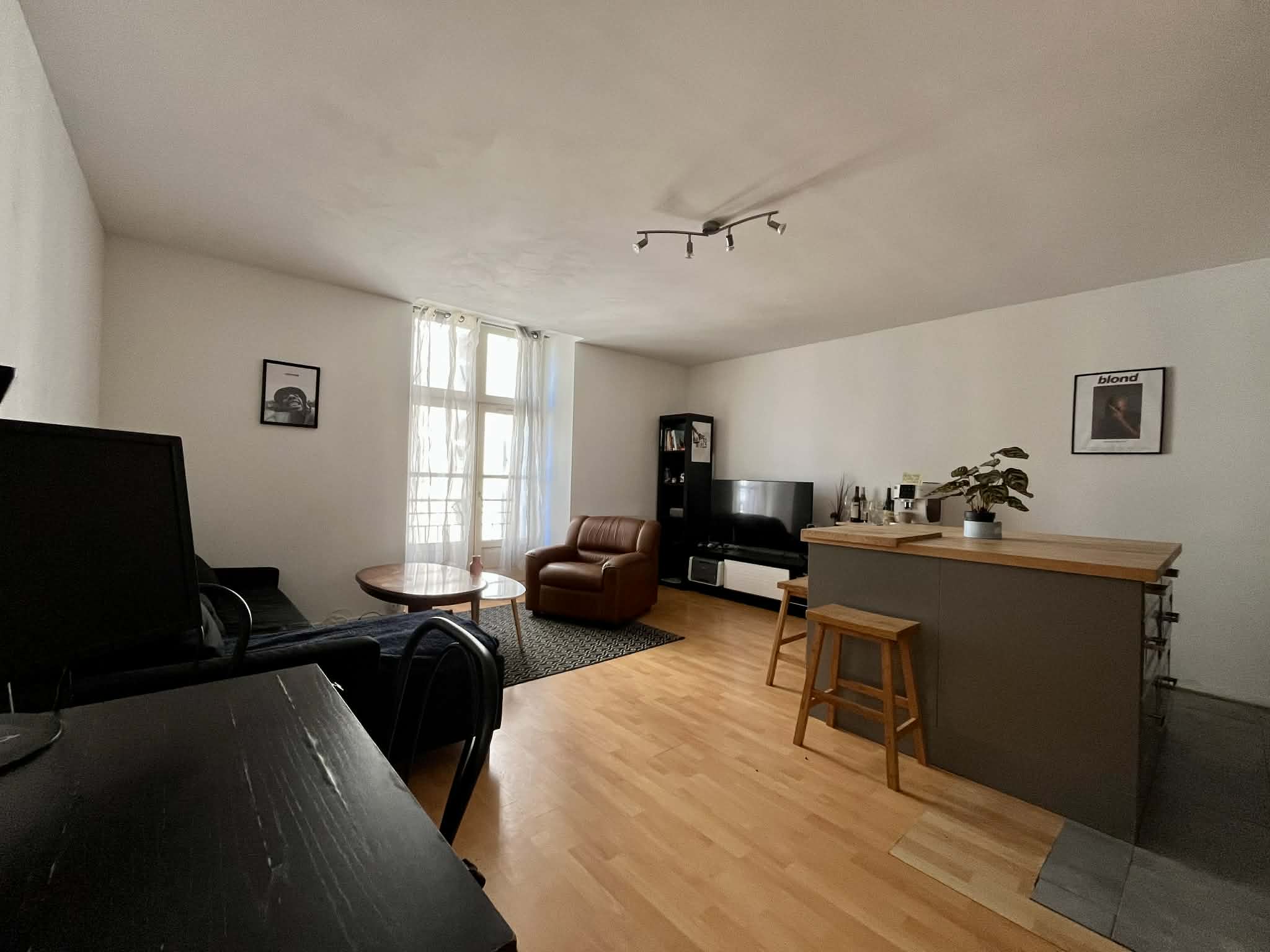 L’appartement est situé au 1er étage d’une petite copropriété (sans ascenseur). Il se compose : d’une entrée donnant sur la pièce de vie très agréable, avec espace séjour et cuisine aménagée et équipée (four, hotte, réfrigérateur, micro-ondes) avec son ilot central. Nous retrouvons ensuite une chambre avec grand placard, une salle de bains avec lave-linge et un WC séparé.