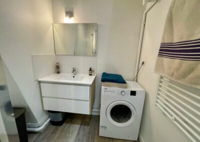 L’appartement dispose également d’une grande salle d’eau avec WC d’une surface de 6,30 m 2.